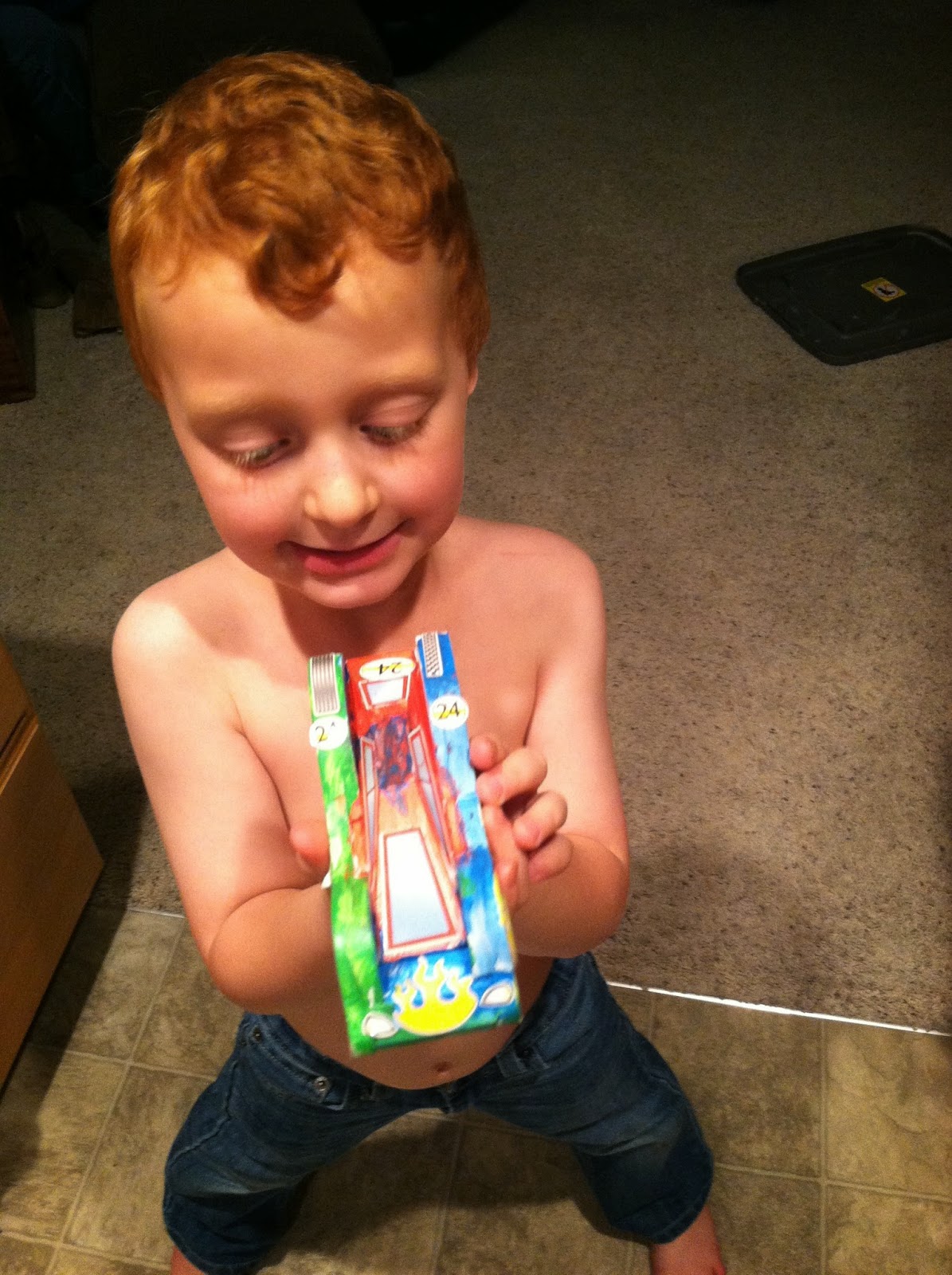 We found a kit at Walmart that had three wood race cars in it. Grandpa loved helping them put them together.
