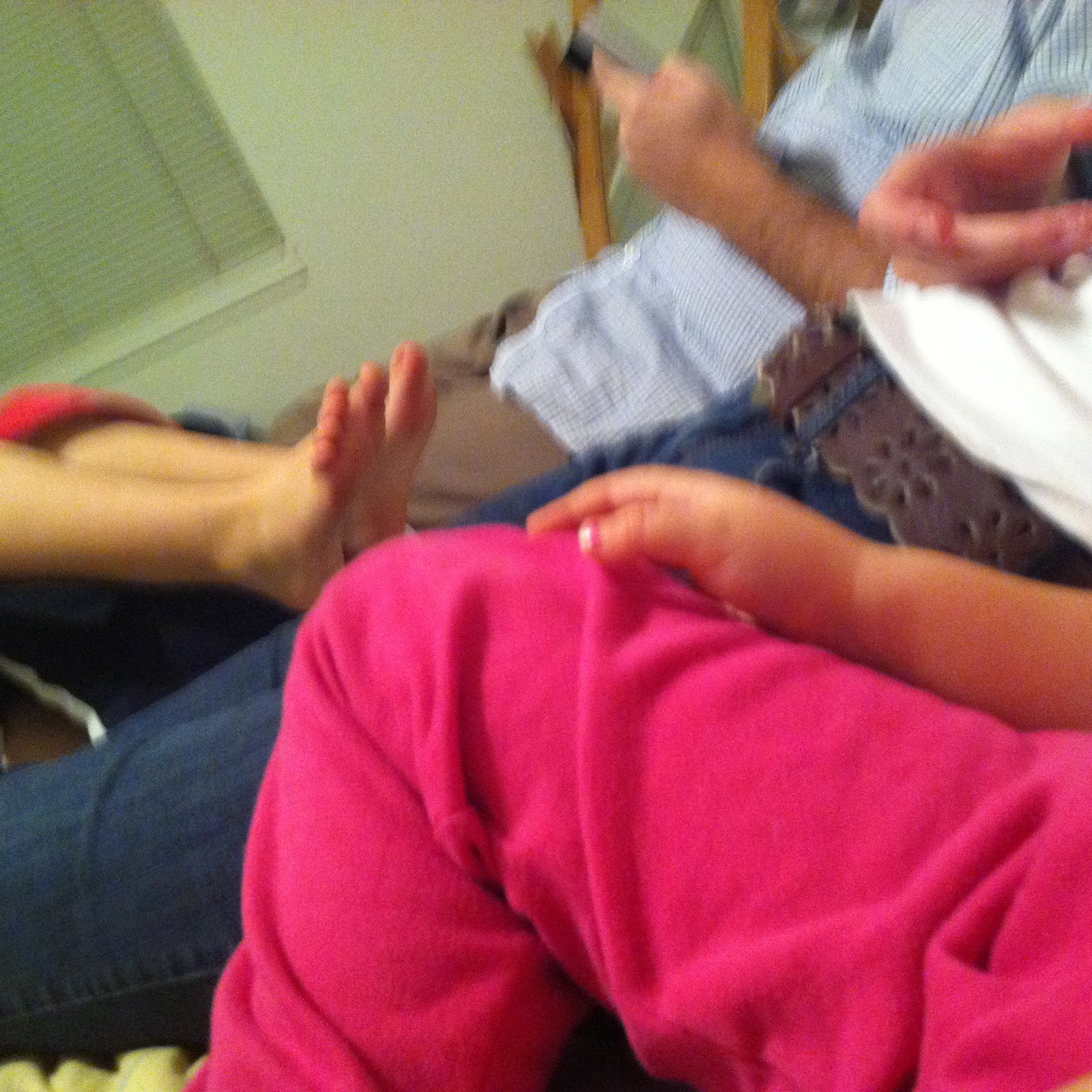 I took this picture because I was just sitting on the couch reading and he grabs his toys and gets as close to me as possible and just started playing right next to me. I thought it was cute.