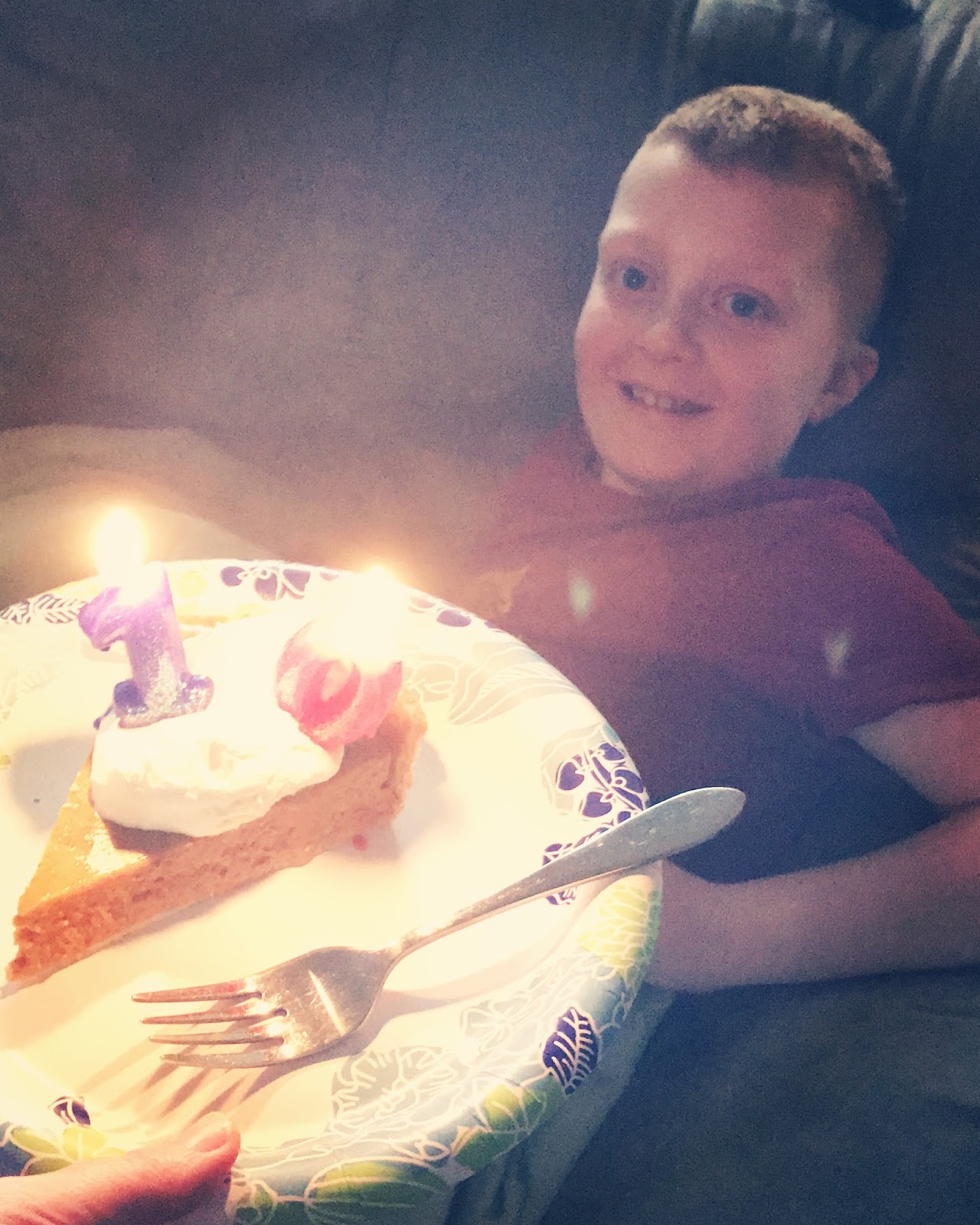 Then he had a fever of 102. Such a bummer to get sick on your birthday. (We originally thought he had influenza also. I even took him to the doctor they didn't test him because of the high possibility but did prescribe him Tamaflu. But I didn't feel right about him taking it so I never gave it to him. He was only sick with a fever for about two or three days and then was bouncing off the walls. Not much of a cough. So we think he was just sick with something but not influenza. My mom never got and Oak never got it. )